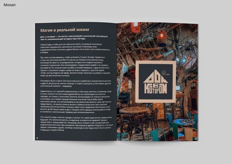 3 и 4 развороты посвящены барам и пабам, совмещая в себе не только небольшое описание мест, но и интересные факты о еде в древние времена и о напитках, считавшихся магическими