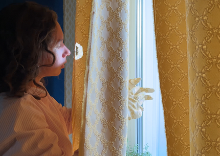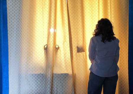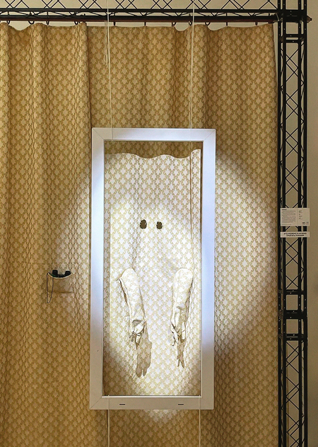 «Тайком» представляет собой модифицированные шторы: в них проделаны отверстия для глаз, пришиты перчатки и карман с биноклем. Функция объекта: подглядывать за другими, при этом оставаясь анонимным. Шторы выступают в роли барьера, который защищает и ограничивает. «Происходящие за окном» враждебно, невозможно полностью избавиться от этой преграды. Но «внешний мир» вызывает желание рассматривать его хотя бы издалека. В своей работе я исследую тему тревоги, вызванной страхом потерять анонимность и невозможностью контактировать с манящим, но пугающим «внешним миром»