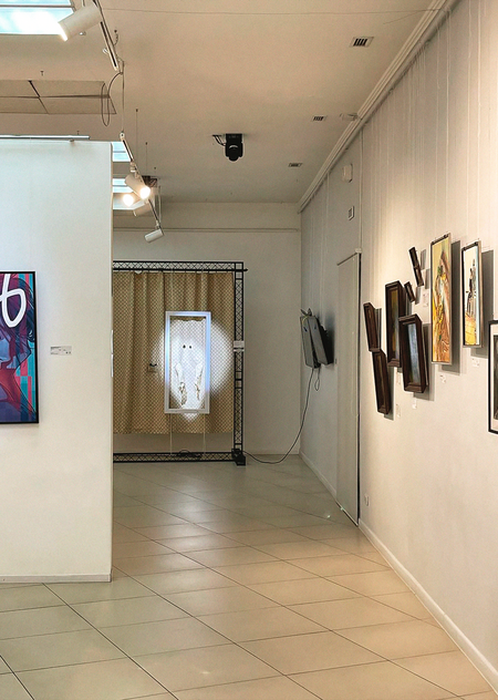 Мой арт-объект был представлен на выставке «Куда глаза глядят». Работа, посвящённая теме подглядывания и исследования границ наблюдения, соответствовала ключевой концепции выставки о взгляде как инструменте творческого восприятия. Зрителям было предложено стать активным участником через физическое взаимодействие с объектом. Интерактивность работы размывало грань между наблюдателем и наблюдаемым, что напрямую перекликалось с идеей выставки.