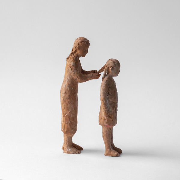 «Женщина, заплетающая косу дочери» // «Фигурный сосуд в виде женской головы», 2025