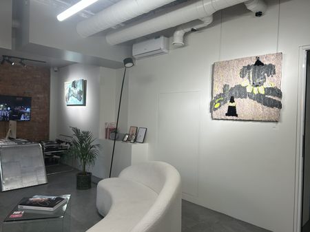 В свою очередь, из-за большого количества работ, которые представлены на относительно небольшой площади, свет не акцентирует одну из работ, а освещает все равномерно
