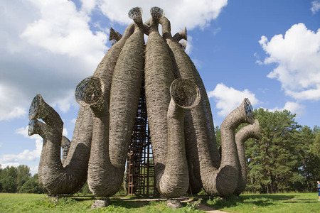 При создании айдентики я вдохновлялась симметричными архитектурными формами парка «Никола-Ленивец» и воссоздала аналогичную фигуру с помощью средств Touchdesigner