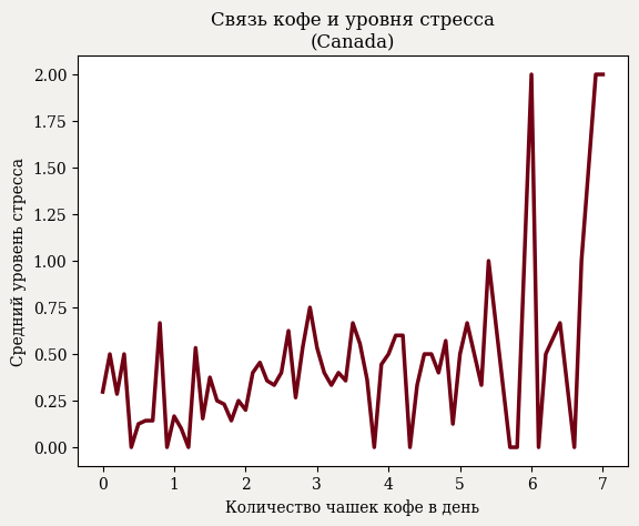 График показывает, что при увеличении количества кофе средний уровень стресса имеет значительную тенденцию к росту.