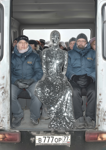 Бренд VETEMENTS часто работает с «анти-модой» и визуальными ключами пост-советского пространства, исследуя, где проходит черта между возвышенным и обыденным, массовым и элитарным, глянцевой картинкой и социальным комментарием. В рамках этой AI-серии я совмещаю авторский стиль фотографа Дмитрия Маркова, документирующего болезненную российскую действительность, с обезличенными образами из коллекции Vetements Spring/summer 2024. Вместе рождается честный, грубый и одновременно сюрреальный визуальный язык.