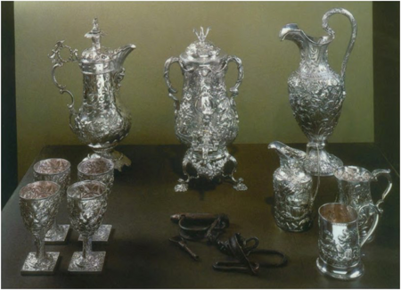 В зале, посвященном декоративно-прикладному искусству и «добропорядочному» колониальному быту, Уилсон разместил изысканные серебряные кубки и чайные сервизы в одной витрине. Рядом, в той же витрине, но отделенной перегородкой, лежали железные оковы. Так Уилсон обнажил экономическую основу «изящного» колониального стиля жизни: роскошь и утонченность метрополии напрямую финансировались насилием и порабощением в колониях.