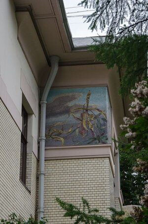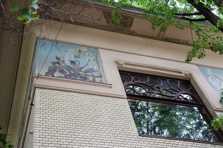 Мозаичный фриз на фасаде особняка Рябушинского с изображением орхидей и ирисов