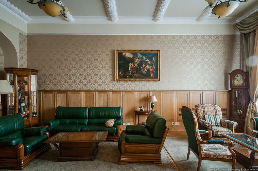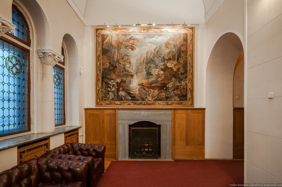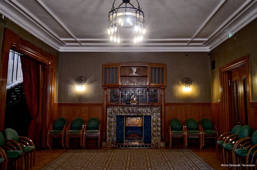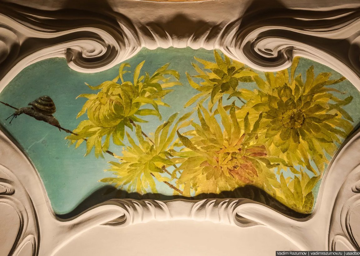 Парадная мужская гостиная в особняке Рябушинского. Потолок комнаты превращен в философскую метафору: вечное цветение природы в обрамлении водной стихии
