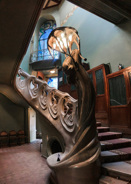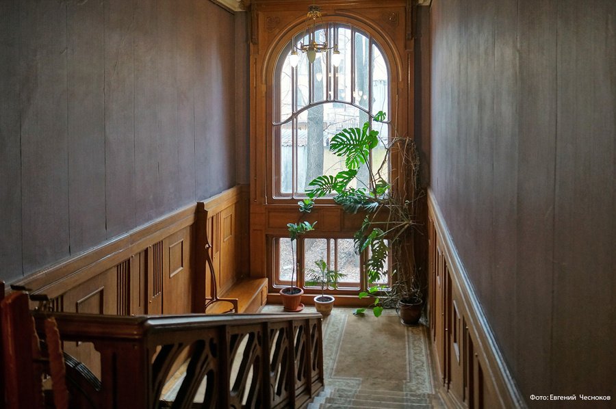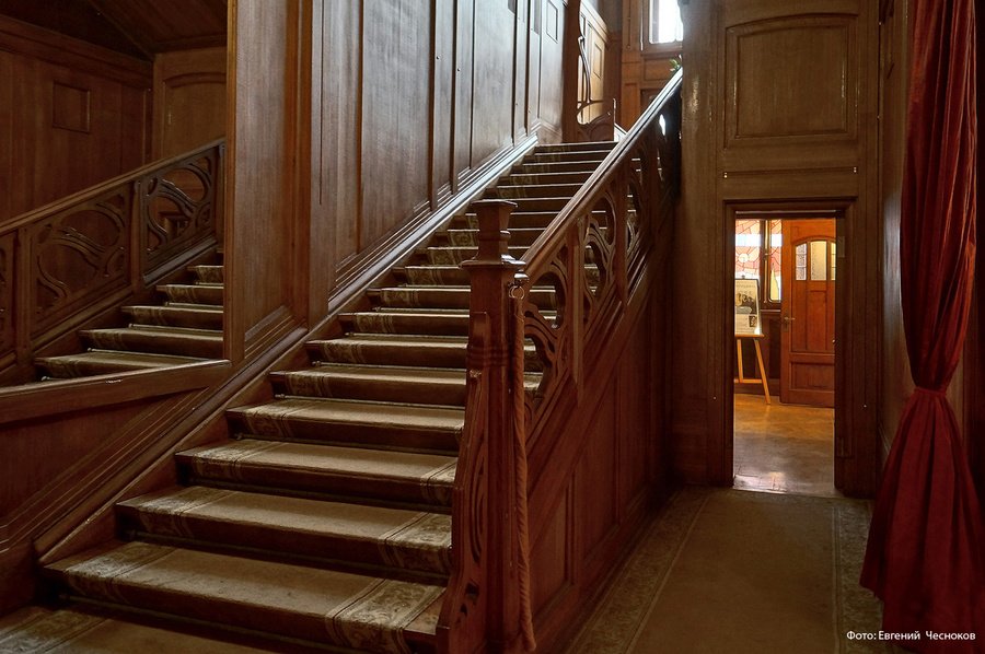 Но главный шедевр скрыт внутри — знаменитая парадная лестница. Она воплощает ключевую для модерна тему водной стихии: мраморные «волны» ступеней, кованые перила в виде спиралевидных ростков и светильник-медуза создают тотальную иммерсивную среду, переносящую обитателя дома из шумного города в мифологизированный подводный мир. Историк архитектуры Е. И. Кириченко писала: «Лестница в особняке Рябушинского — это не просто функциональный элемент, а художественный образ вселенского масштаба… где человек ощущает себя частью вечного движения природных стихий»². Этот дом был не просто данью моде, это была материализованная утопия, демонстрирующая, что промышленник и коллекционер Рябушинский — человек нового типа, ценитель современного искусства.