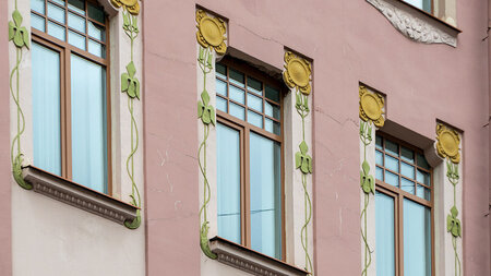 Растительные и цветочные орнаменты на фасадах Доходного дома П. Т. Бадаева