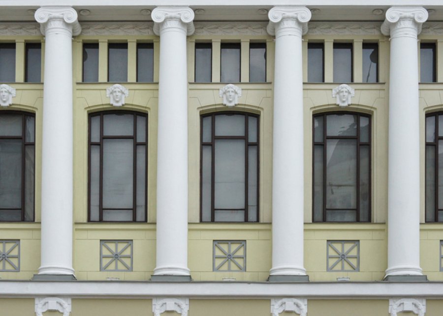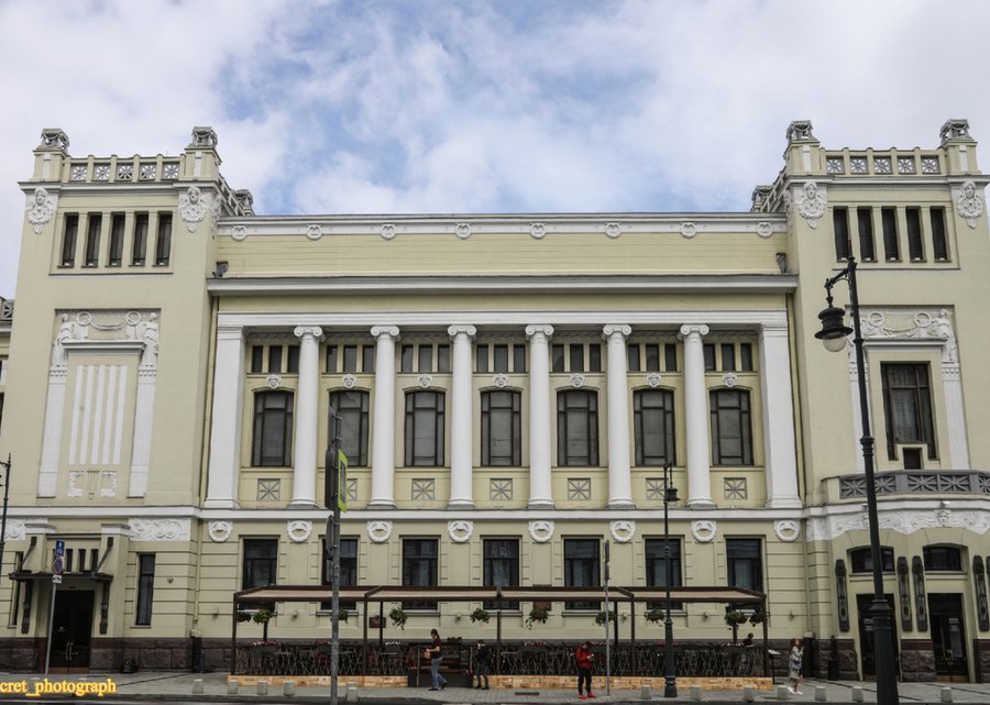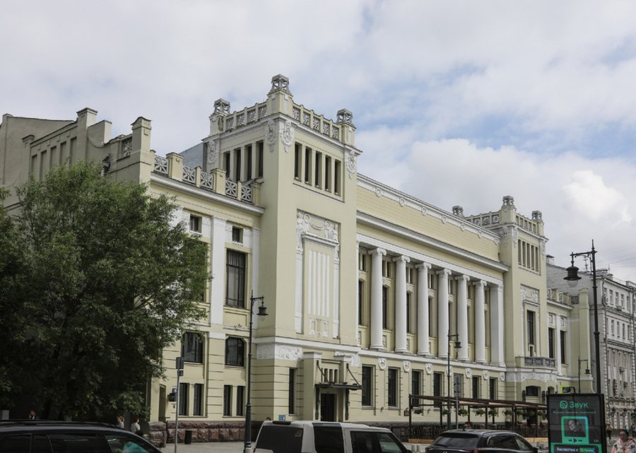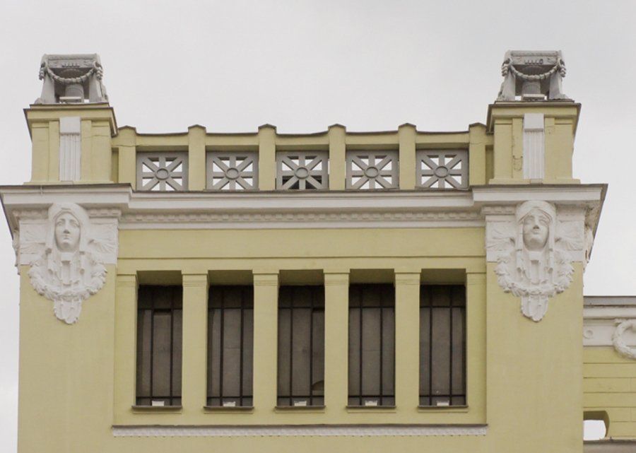 Здание Купеческого клуба (арх. И. А. Иванов-Шиц, 1907-1908, сейчас Театр Ленком) — еще один знаковый объект. Его фасад, более сдержанный, чем у частных особняков, тем не менее, обладает всеми чертами модерна: асимметричная композиция, крупные оконные проемы, изящный лепной декор с растительными мотивами. Это было место, где деловая элита Москвы не только развлекалась, но и решала общие вопросы, формируя корпоративный дух. Архитектура модерна визуально отделяла их клуб от аристократических собраний прошлого.