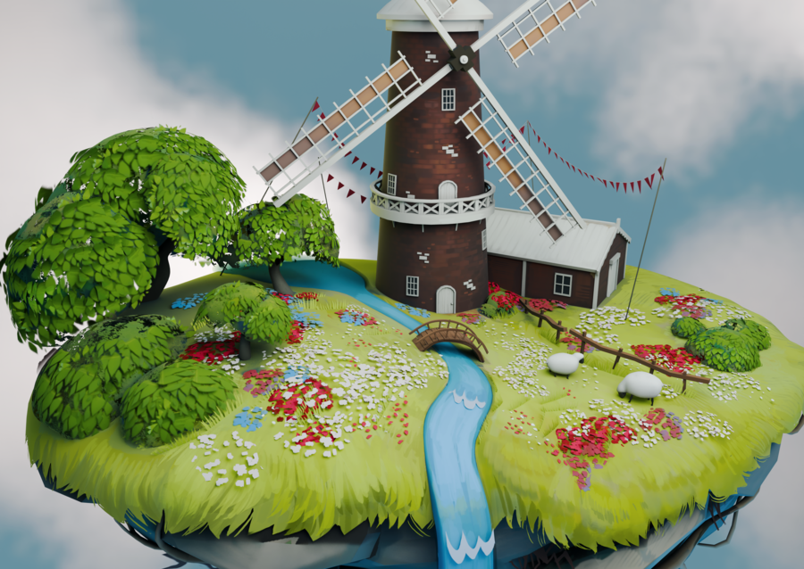 Лишь скрипят лопасти мельницы и шумит ветер, унося остров всё дальше и дальше в небеса.