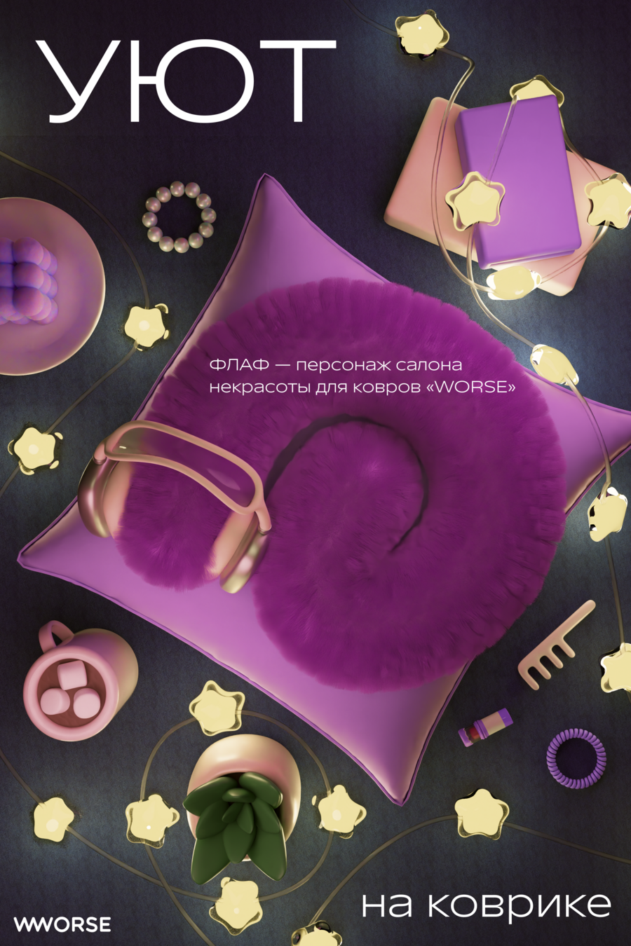 Салон некрасоты «WORSE» — место, где ковры портятся: распускаются по ниточке или покрываются пятнами, но обретают индивидуальность.