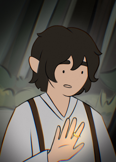 Заинтригованный таинственным предметом, Фродо решает проверить, что произойдёт, если надеть это кольцо?..
