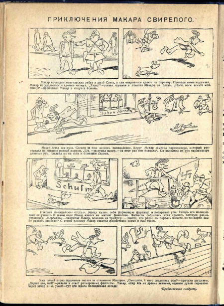 1. Журнал «Ёж» 1933 год, № 17 и 18, стр. 10. ПРИКЛЮЧЕНИЯ МАКАРА СВИРЕПОГО рис. Б. Антоновского 2. Журнал «Ёж» 1930 год, № 13, стр. 22. НОВЫЕ ПРИКЛЮЧЕНИЯ МАКАРА СВИРЕПОГО рис. А. Успенского