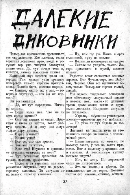 1. Журнал «Чиж» 1931 год, № 2, стр. 17. КУР, рис. М. Разулевича 2. Журнал «Чиж» 1931 год, № 5, обложка. Художник не указан.