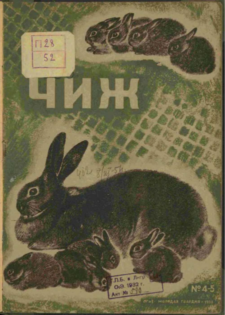 Два года спустя, в 1930-м, в качестве приложения к «Ежу» появился журнал «Чиж», вскоре ставший самостоятельным изданием. Эта издательская пара, чьи названия расшифровывались как «Ежемесячный журнал» и «Чрезвычайно интересный журнал», образовала целостную систему, ориентированную на разные возрастные группы юных читателей. «Ёж» публиковал материалы для пионерской аудитории, в то время как «Чиж» ориентировался на дошкольников. Для многих талантливых писателей детские журналы стали единственной возможностью публиковаться в то сложное время, своеобразным уходом в детство, в игру, в легкие и маленькие формы, в моделирование мира «понарошку».