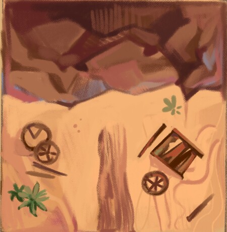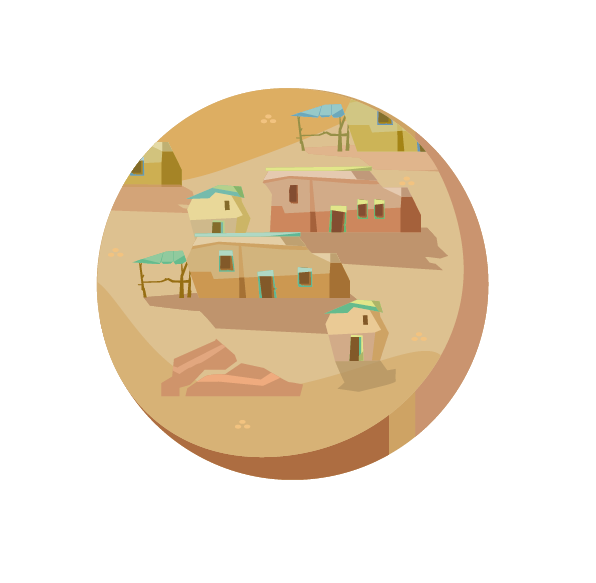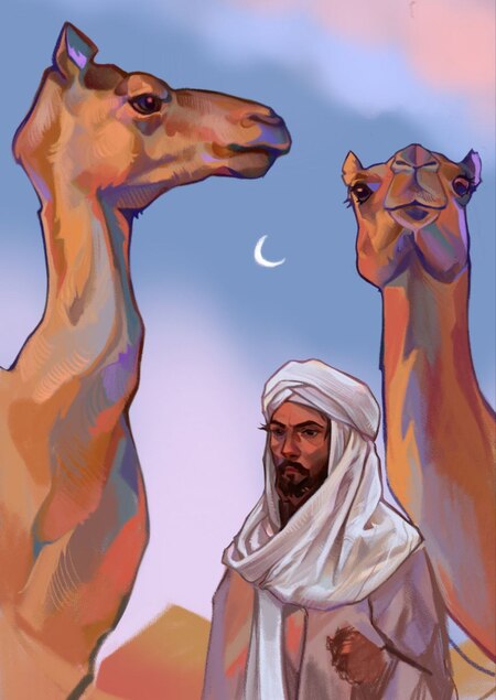 Я начала с визуального исследования, собрала обширную подборку референсов по ландшафтам пустыни, архитектуре и декоративным мотивам арабских стран, предметам торговли и караванному быту, а затем систематизировала это в понятную базу для дальнейшей работы.